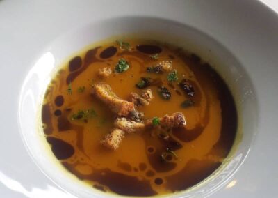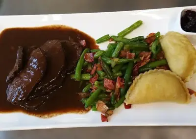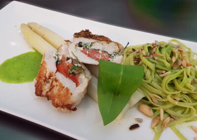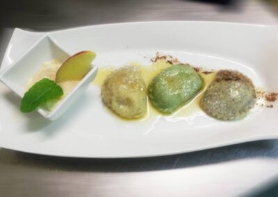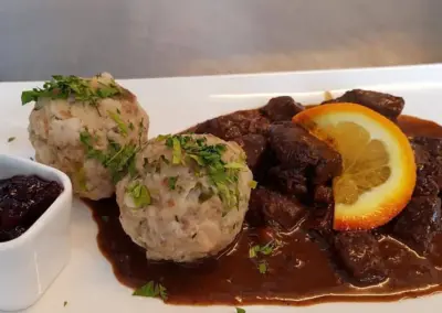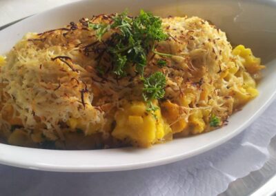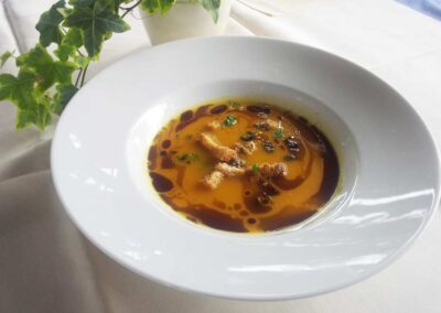 In der Küche setzen wir auf höchste Qualität, handwerkliches Können und die Liebe zum Detail. Jedes Gericht wird mit Sorgfalt und Hingabe zubereitet, um den Gaumen unserer Gäste zu verwöhnen. Dabei legen wir großen Wert auf regionale Zutaten und authentische Zubereitung, um eine unverwechselbare kulinarische Erfahrung zu bieten.